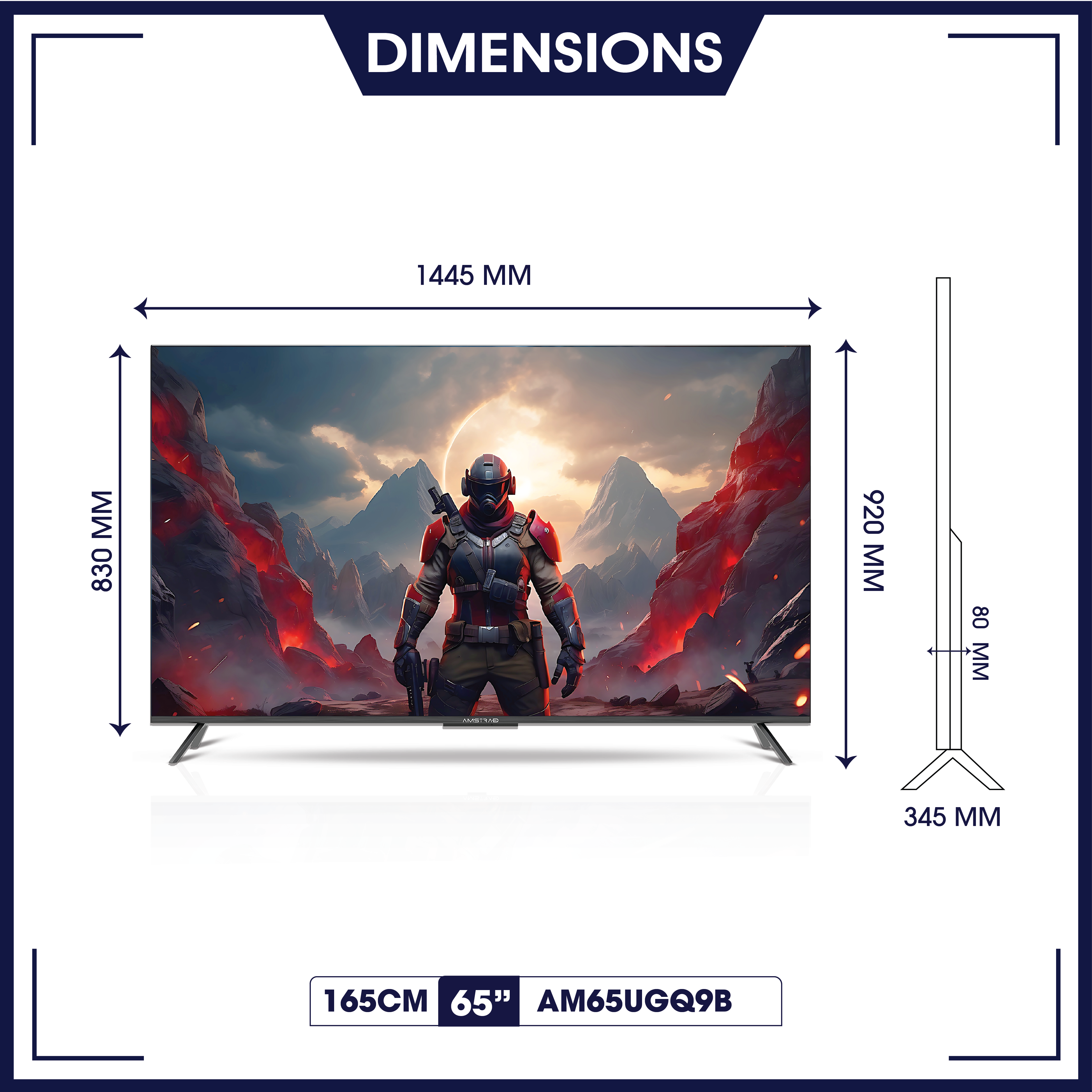 | NET DIMENSIONS WITH STAND (LxWxH) | MM | 1445 X 345 X 920 |
